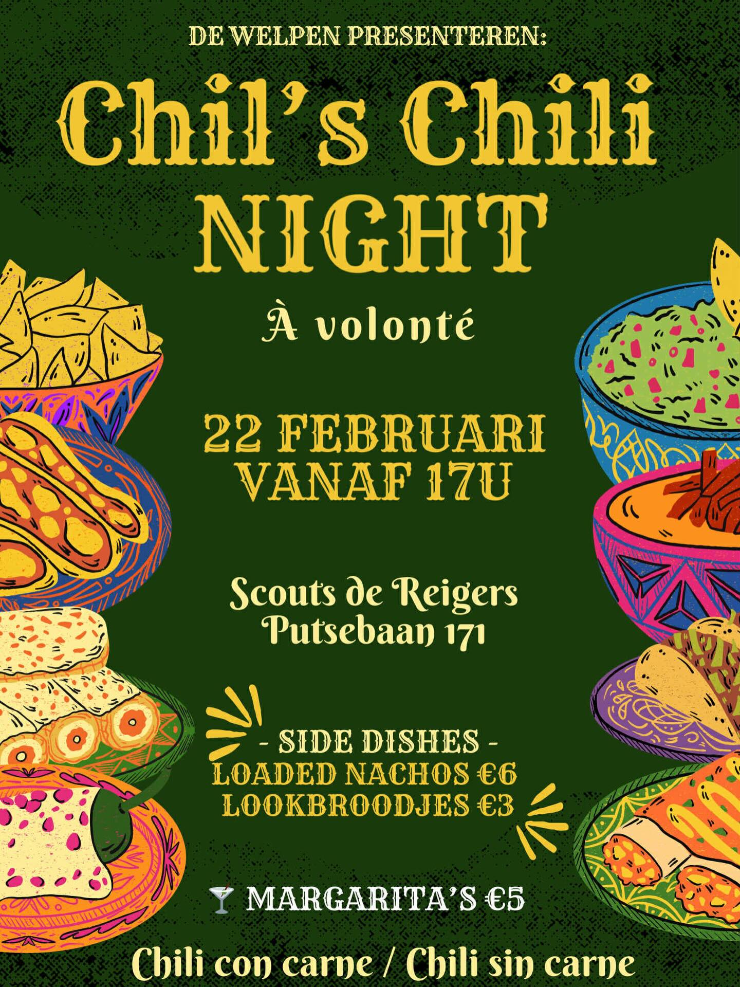De welpen nodigen jullie met veel goesting uit om te komen genieten van hun huisgemaakte chili 🍽️🌶️